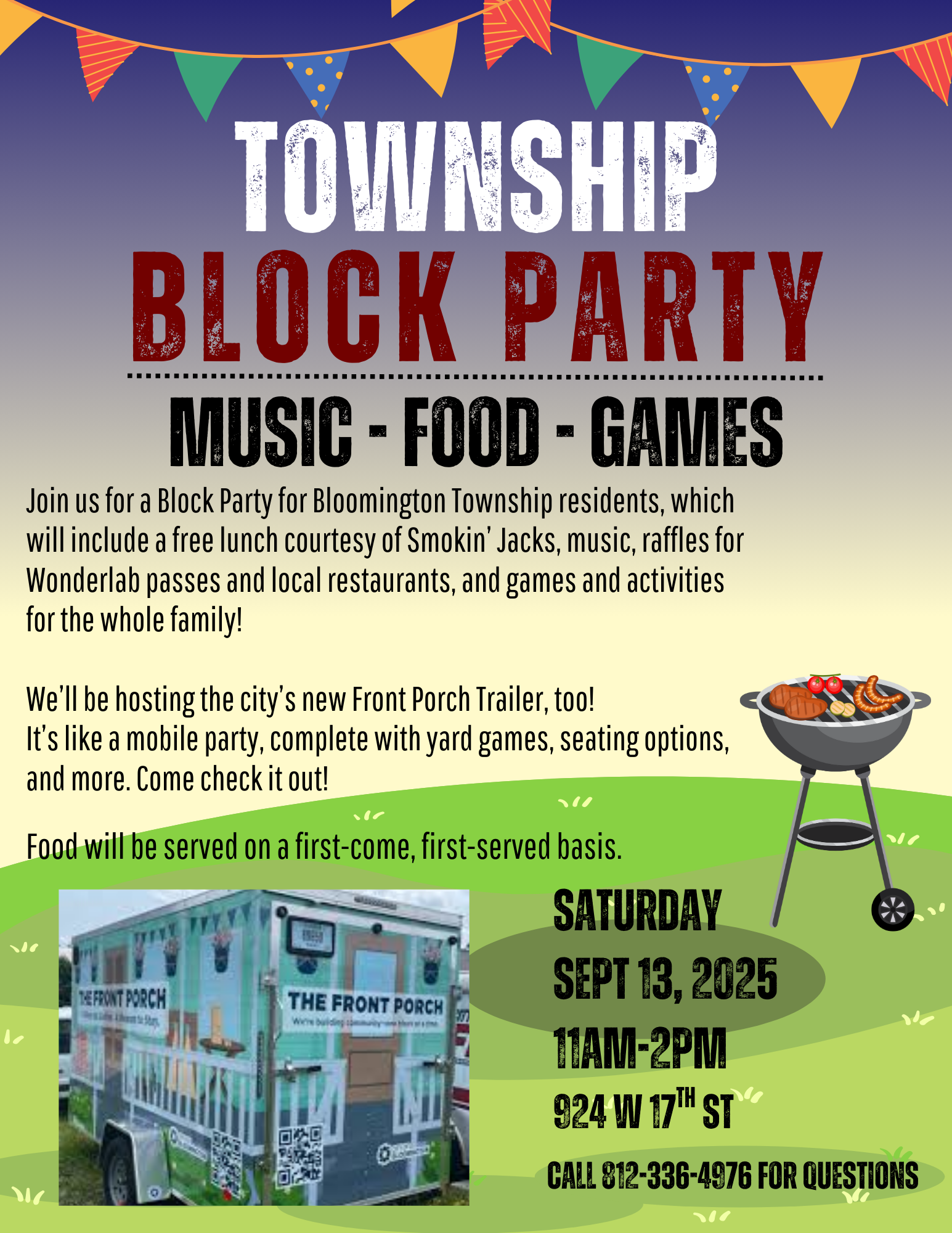 Join us for the first-ever Bloomington Township Block Party on Saturday, September 13, from 11 AM to 2 PM! Enjoy a free …
